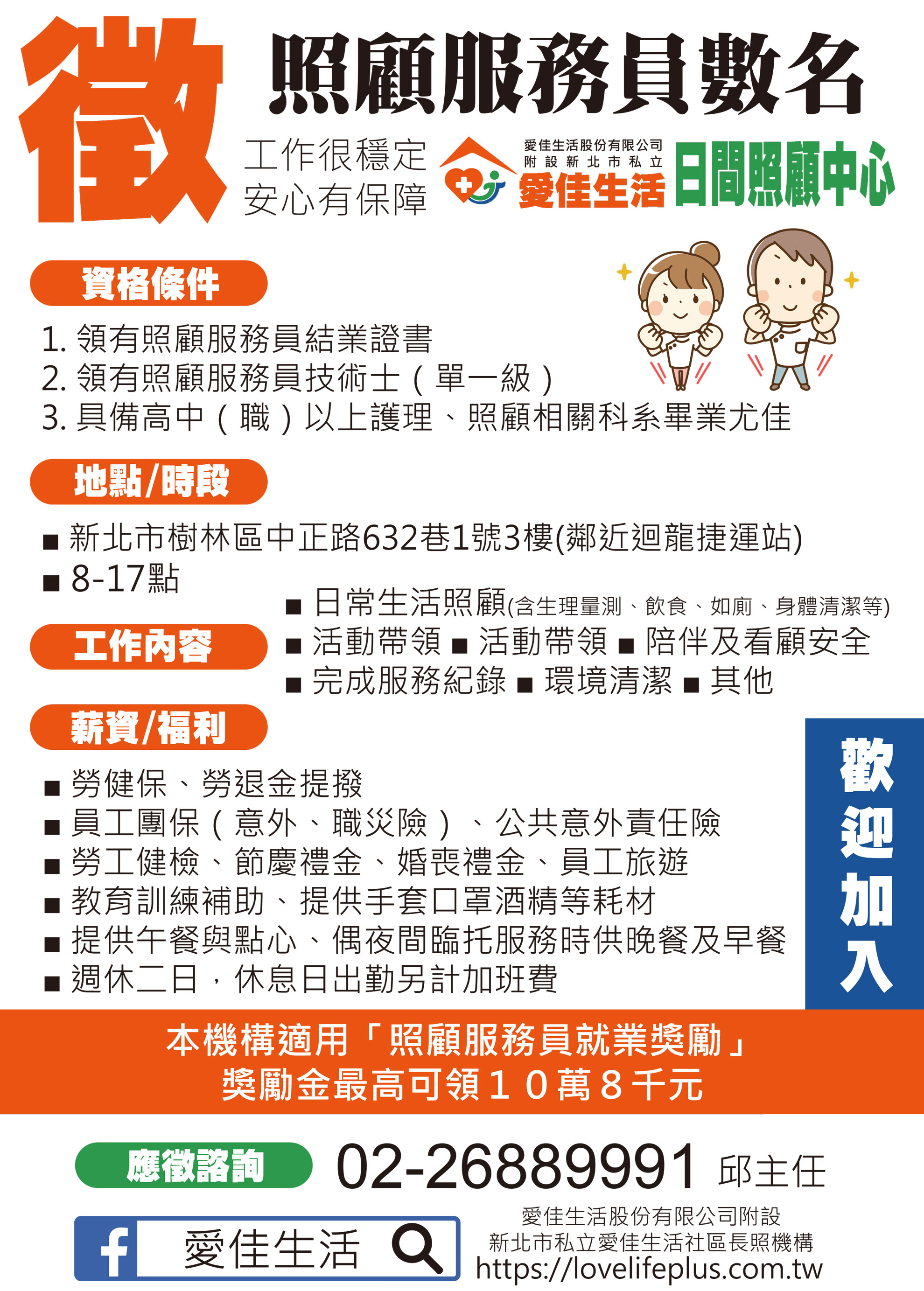 徵照顧服務員數名